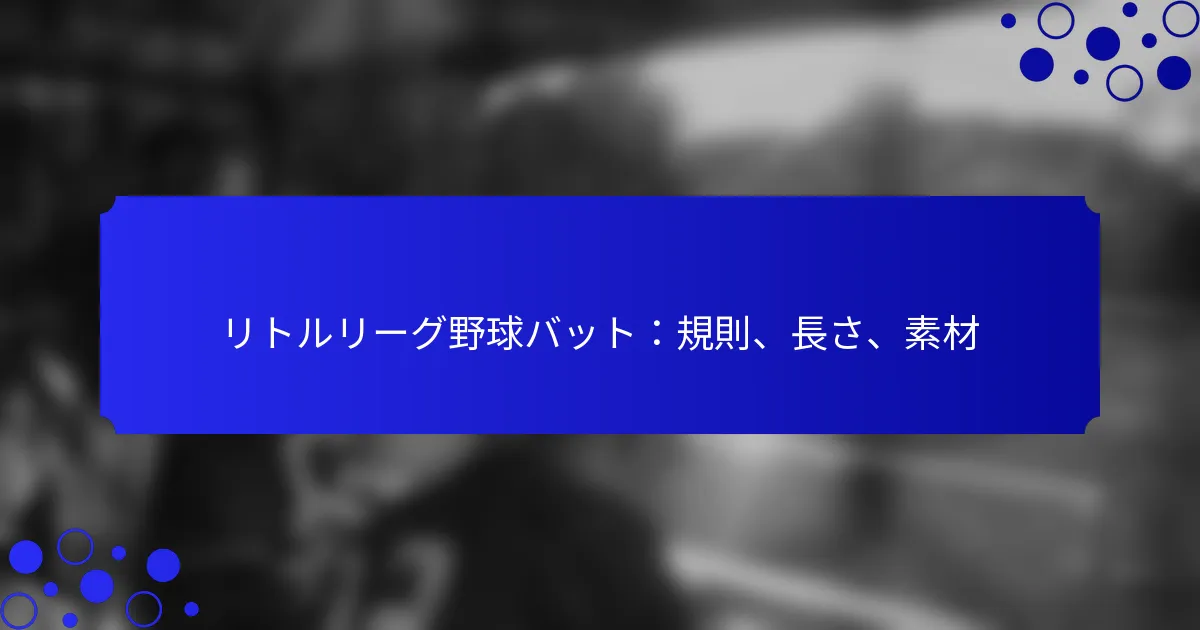 リトルリーグの野球バットは、公平なプレーと安全を確保するために、サイズ、重量、材料に関する特定の規則に従う必要があります。これらの基準に従うことは、試合やトーナメントに参加するために重要です。