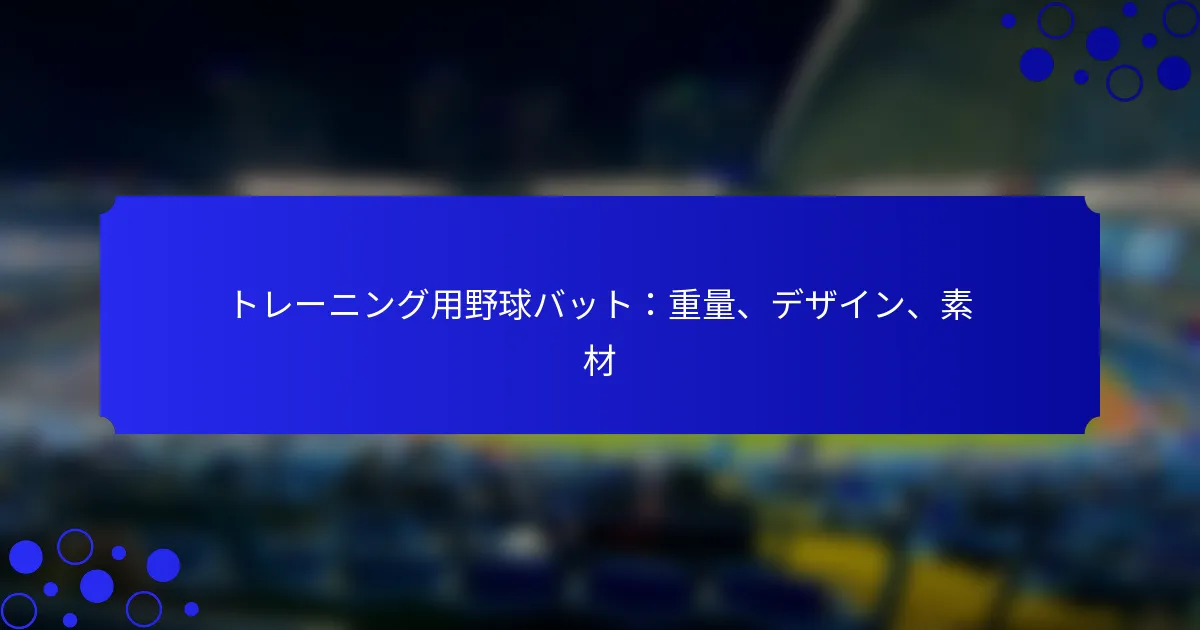トレーニング用野球バットは、選手のスキルを向上させる上で重要な役割を果たし、その重量、デザイン、素材がパフォーマンスに大きく影響します。適切な重量はスイングメカニクスと筋肉記憶を向上させ、重量配分やバレルサイズなどの考慮されたデザイン要素は接触効率を改善することができます。さらに、木材、アルミニウム、または複合材のいずれかの素材の選択は耐久性とトレーニングの効果に影響を与えるため、最適な発展のために適切なバットを選ぶことが不可欠です。