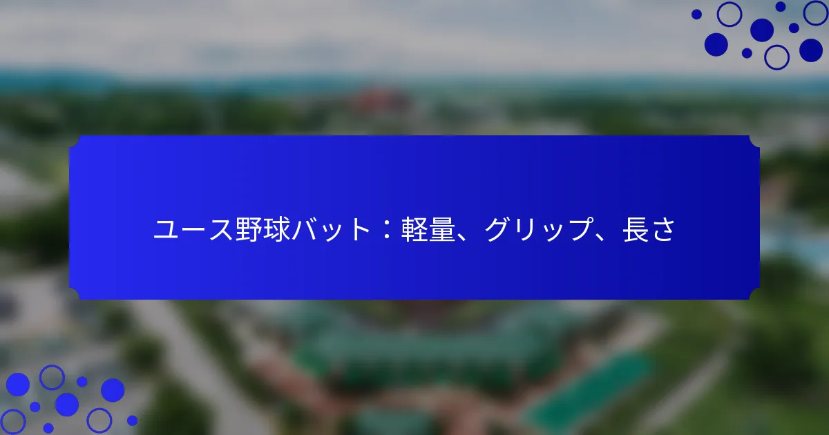 ユースファストピッチソフトボールバットは、選手のパフォーマンスにおいて重要な役割を果たし、その長さ、重さ、グリップタイプがスイングメカニクスや安全性に大きく影響します。適切なバットを選ぶには、選手の年齢、サイズ、スキルレベルを考慮し、パフォーマンスを向上させつつリーグの規則に従うことが必要です。さらに、ラバーまたは合成の適切なグリップタイプを選ぶことで、プレイ中の快適さとコントロールをさらに向上させることができます。